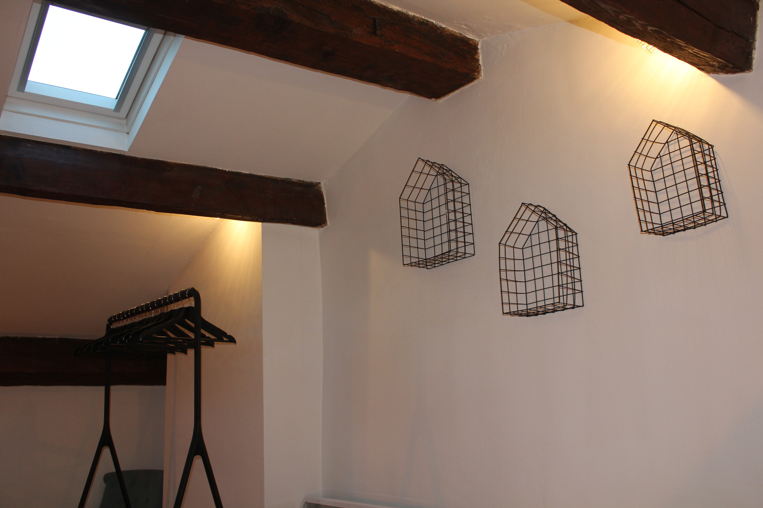 Un escalier dessert les deux étages regroupant les trois chambres et, à sa base au RDC, une salle de douche (équipée d'une machine à laver le linge) plus un WC séparé.